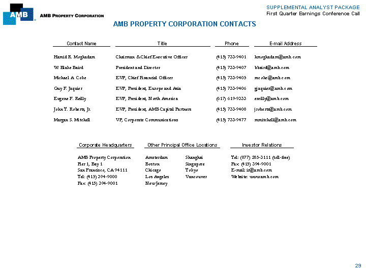 | AMB PROPERTY CORPORATION CONTACTS 29 |