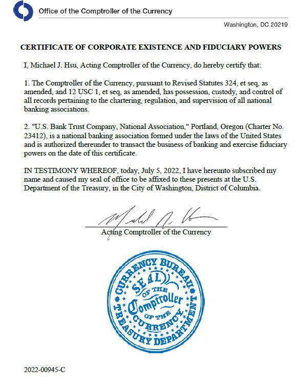 U.S. BANK TRUST COMPANY, NATIONAL ASSOCIATION